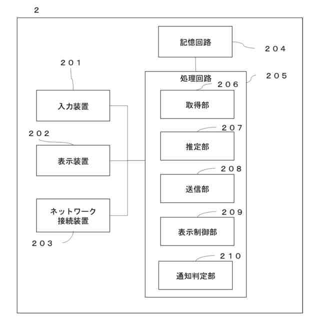 前記推定手段は、疾病に罹患した第一のユーザーの位置情報の履歴より、接触状態にあった第二のユーザーを決定し、