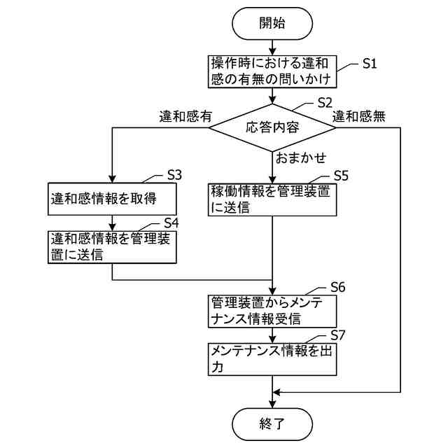 操作者が入力した違和感情報に応じて出力されるメンテナンス情報を見て、操作者は、適切なメンテナンス作業を行うことができる。これにより、軽微な不具合が蓄積されて重大な故障に至ることが抑制される。