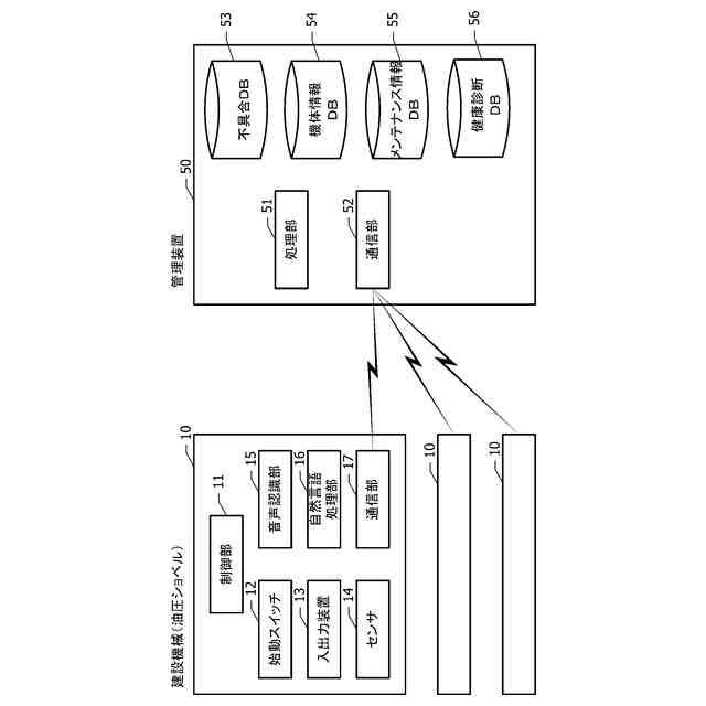 図1は、本実施例による建設機械10、及び建設機械10を管理する管理装置50のブロック図である。