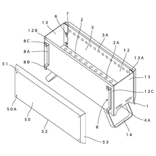キャンプなどで使用される焚火台とよばれる燃焼器がある。この燃焼器は、箱状の燃焼器本体と、燃焼器本体の底板の上に配置した燃料載置部と、燃料載置部の上部に形成される燃焼室とで構成されており、燃焼室の上部開口から燃料となる薪を投入する。燃料載置部には空気供給口が設けてあり、燃料に着火すると燃料の下側から燃焼空気が供給されて燃焼する。