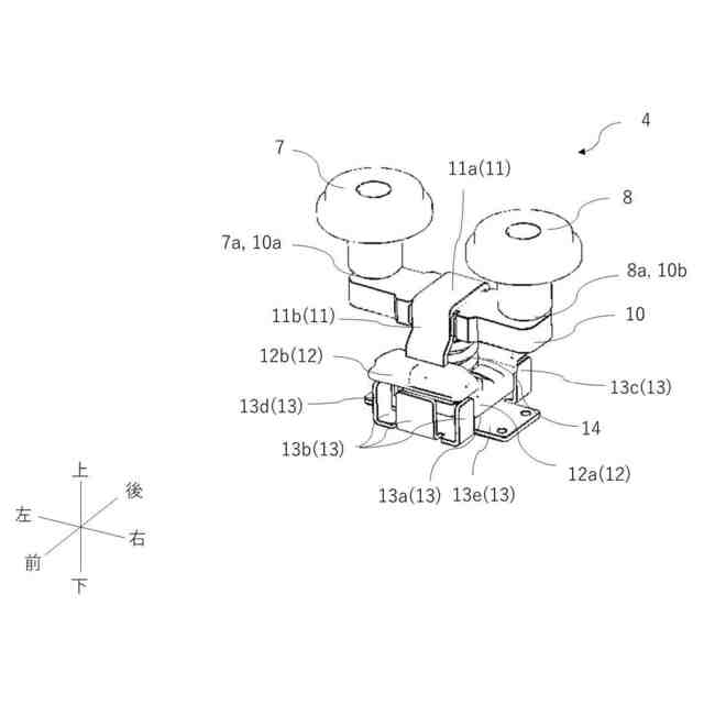 第1ケース2の上部には左右方向に並んで貫通孔2a、2bが形成されており、右側の側面下部には貫通孔2cが形成されている。第1ケース2の開口部の端部には全周に亘って凹部2dが形成され、第2ケース3の端部には全周に亘って凹部2dに嵌合する凸部3aが形成されている。