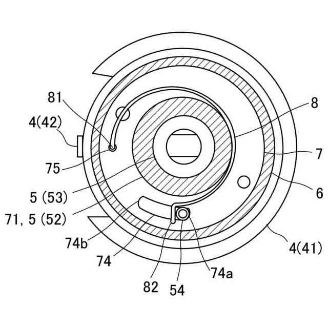 軸方向における前記ソケットと前記脱落防止カバーとの間に配置され、前記ソケットの軸心周りに膨らむ円弧状であり、前記脱落防止カバーを軸心回り方向に付勢する付勢部材と、を備え、