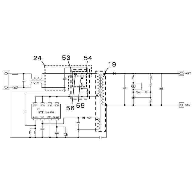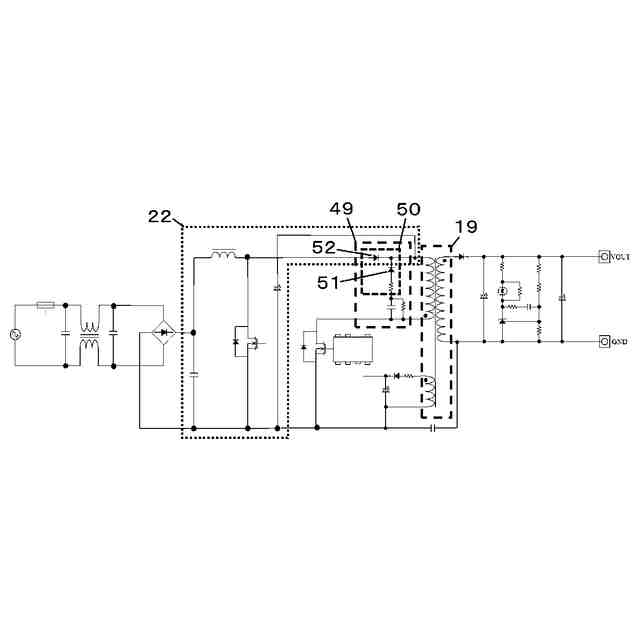 DCRスナバ回路が使用される多くの場合において、図10のような接続構成が見られる。DCRスナバ回路18がトランス19に接続され、スナバ用ダイオード(第1の整流用ダイオード)20とは別の整流用ダイオード(第2の整流用ダイオード)21を有する構成である。