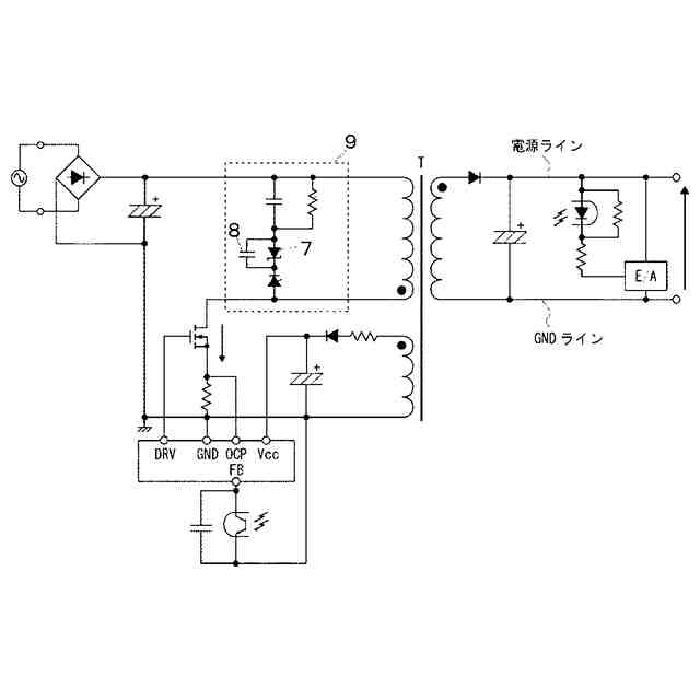 スナバ回路の最も簡単な構成として、コンデンサ(C)と抵抗(R)を用いたCRスナバ回路が用いられてきたが、最近では、トランスを用いた絶縁DC-DCコンバータ等に代表されるフライバック回路等において、一次側メイン素子のサージ電圧抑制手段として、CRスナバ回路にさらに整流用ダイオード(D)を採用したDCRスナバ回路がよく用いられている。
