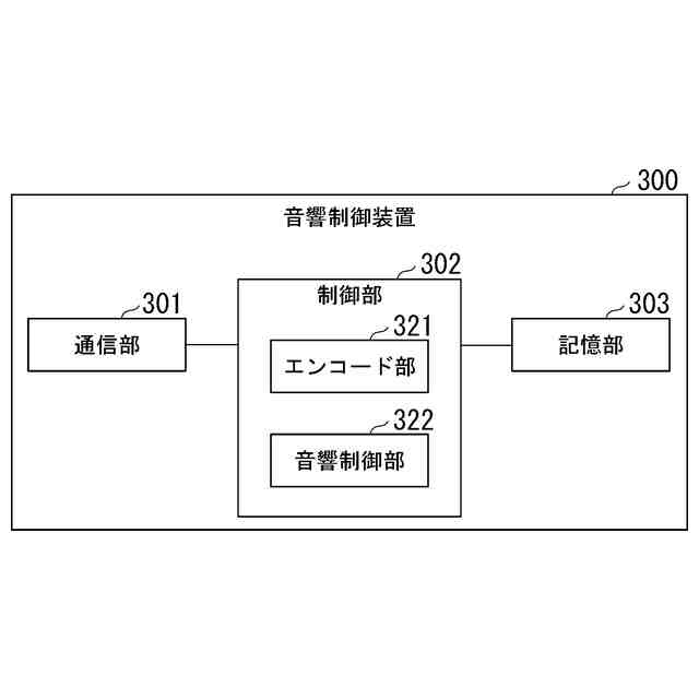 音響制御装置において、自律的に移動可能な自律移動体が稼働する環境範囲の所定位置に設置され、入力された音響信号を音として出力するスピーカのそれぞれに対応する音響信号に対応のスピーカに関するスピーカ情報を埋め込むエンコード部と、