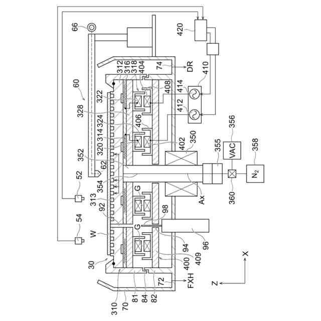 半導体装置の製造工程には、基板を加熱し、且つ回転させた状態で基板の表面に薬液を供給することによって基板の表面をエッチングするエッチング工程が含まれる。この工程において、基板を十分に加熱しつつ高回転で回転させるニーズがあり、そのために構成された基板処理装置が特許文献1に開示されている。この基板処理装置は、基板を保持する回転ステージに設けられた電気ヒータおよび受電コイルと、受電コイルに対してギャップを開けて対面する非回転の給電コイルとを有している。高周波電源ユニットが給電コイルに高周波電力を供給し、電磁誘導により受電コイルに電流が流れ、これにより電気ヒータに給電が行われる。