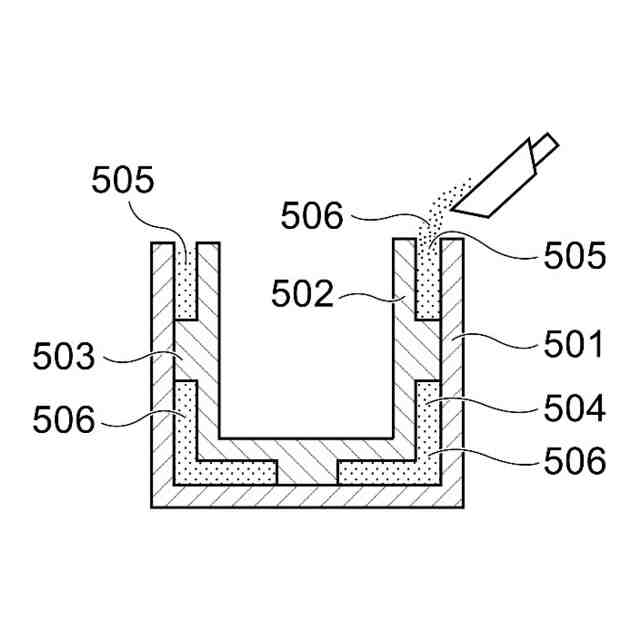 粉末充填法によってフェライトシールド部を設ける方法を説明する概略断面図であって、シールド部材を回転テーブルの回転軸線を通る鉛直面で切断した概略断面図である。
