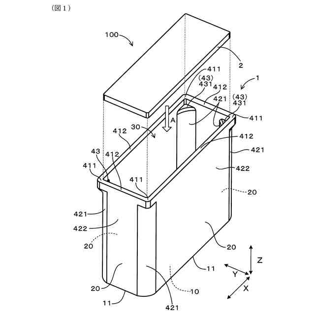 前記蓋嵌入部の四隅を形成する4つの隅部において隣り合う隅部の間の4つの平面部の内側面及び外側面はそれぞれ、前記収容部の四隅を形成する4つの隅部において隣り合う隅部の間の4つの平面部の内側面及び外側面と面一に形成されており、