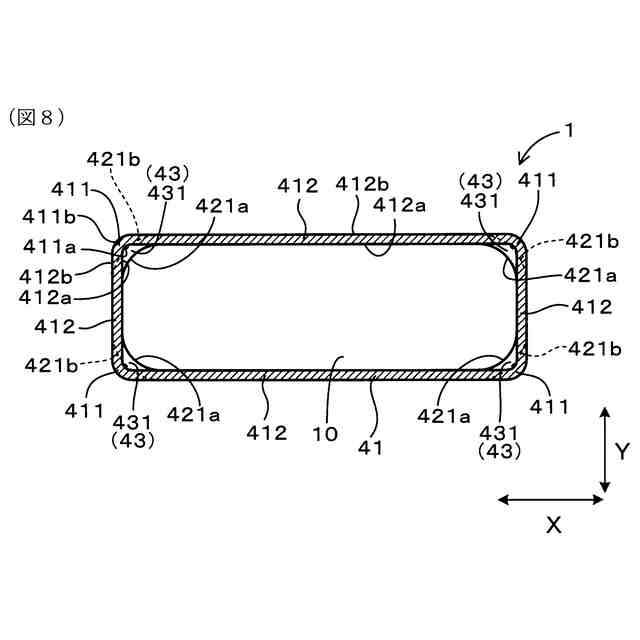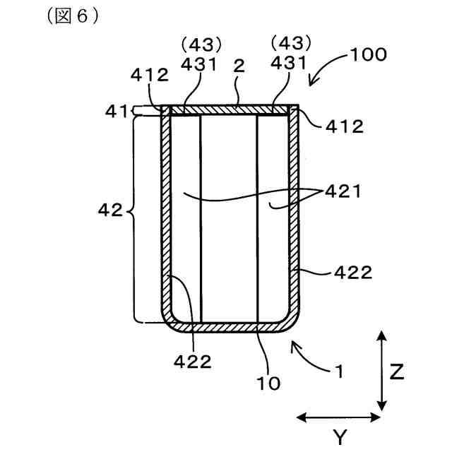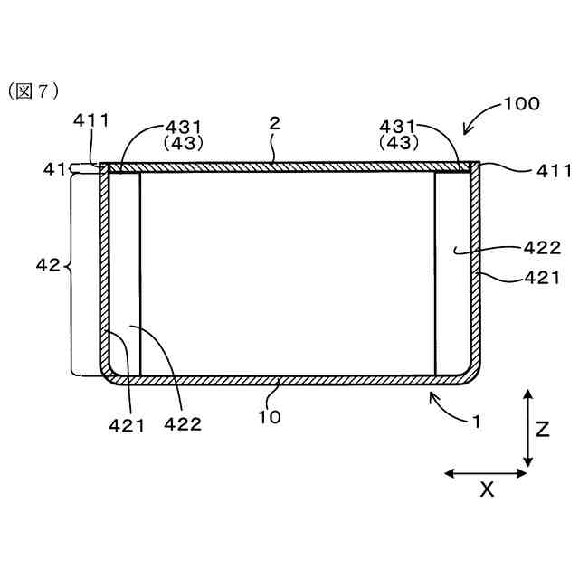 しかしながら、特許文献1に開示の構成において、開口端の隅部の内側面を切り欠く加工は加工コストが高く、加工の難易度も高い。また、特許文献1に開示の構成では、隅部を肉厚とすることで重量が増加するため、軽量化の要請に反する。また、肉厚な隅部の外側面は曲率半径の小さい曲面となっているため、高い成形精度を維持するには手間がかかる。