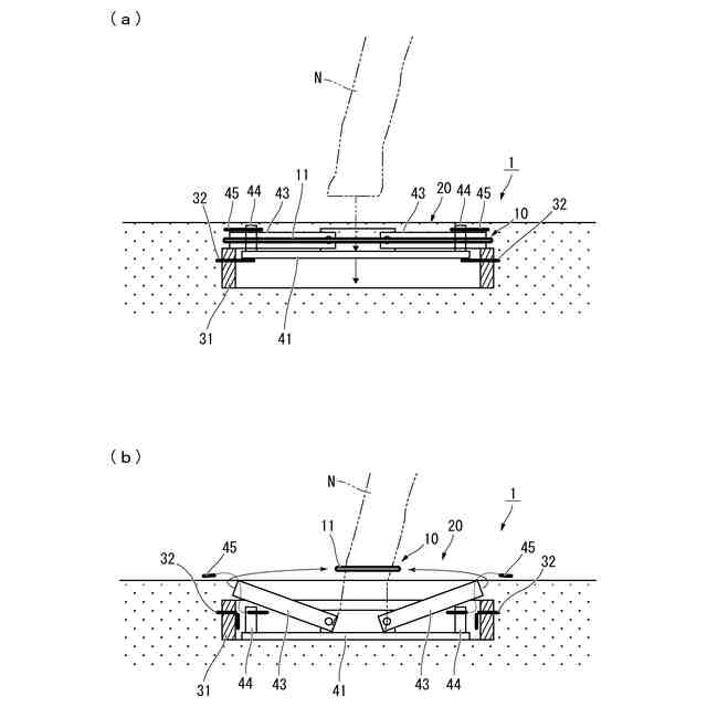 前記土台枠の周壁に設置され、前記踏板を前記土台枠内の上部位置で支持可能に前記土台枠内に突出する踏板干渉突出部を有し、支持した前記踏板に上方から所定以上の力が加わると、前記踏板干渉突出部が分離または前記土台枠内に突出しない状態に変形する踏板支持部材と、