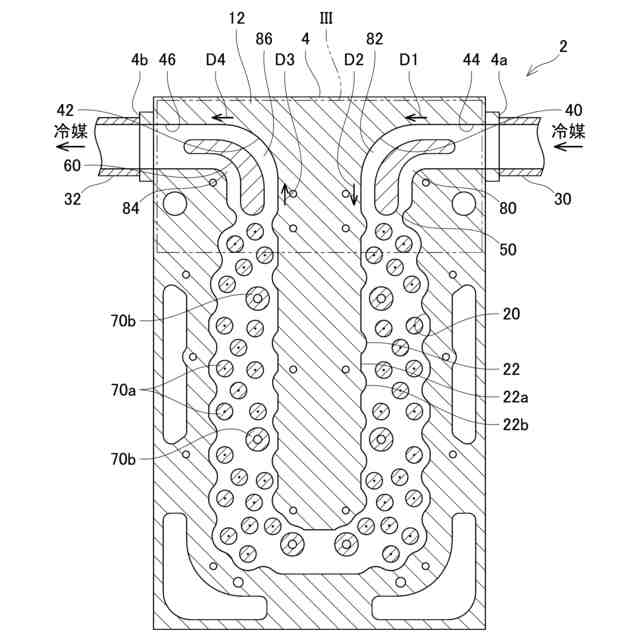 【課題】冷媒をスムーズに流すことができ、冷却効果を向上させることができる技術を提供する。