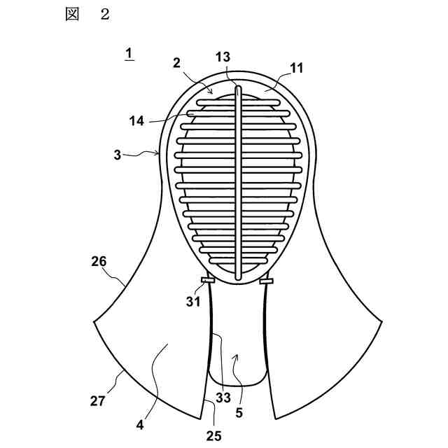 本発明の武道用面は、現代の競技等を行う上記の三種類の武道の面に限る。なお、本発明の武道用面は、古武道や古武術に用いられる日本の鎧兜等、または西洋のスポーツであるフェンシングのマスクや西洋の甲冑の兜などではない。