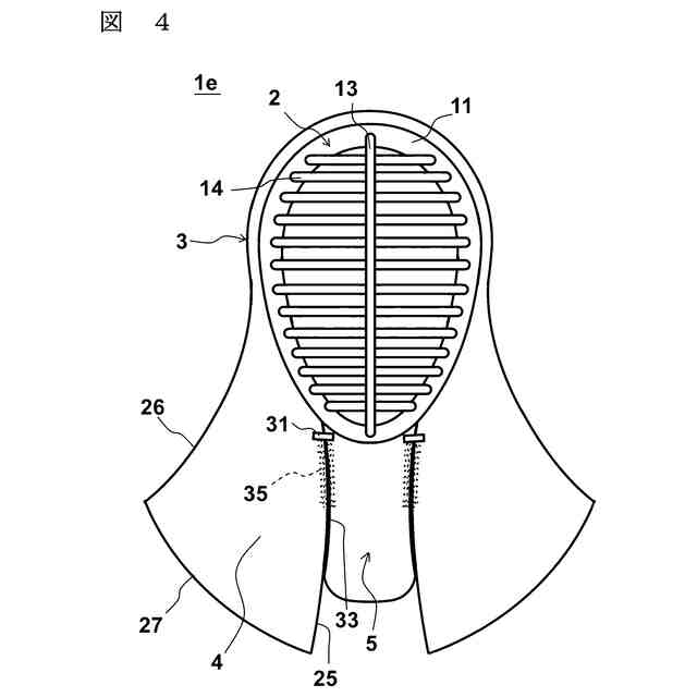 武道用面を着用すると、面布団の両面垂れが着用者の肩で押し広げられて外側に湾曲する。そのため、面布団の両面垂れと突き垂との間や、面垂と肩との間に隙間が生じやすく、この隙間に竹刀等の攻撃用武具が入り込んで危険性を伴うという問題があった。特許文献1では、両面垂を連結する連結機構を備えているが、それでも面垂と突き垂との間に隙間が生じている。