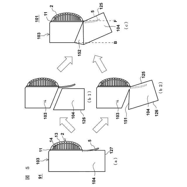 前記面布団から前記面垂を切り離し、又は、前記面布団から前記面垂を動かせるように前記面布団の後ろ側から切り込みを入れ、