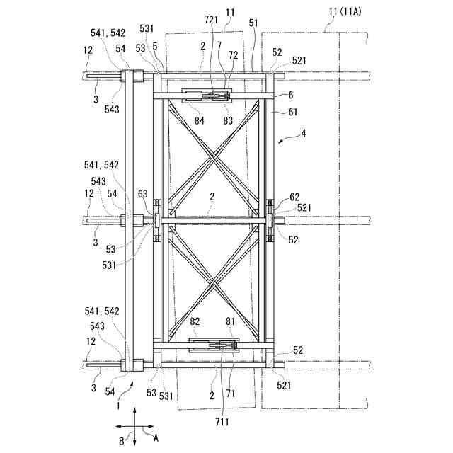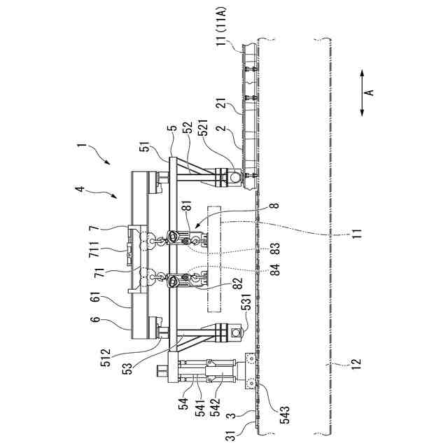 床版架設作業では、設置済みの床版に対して所定の位置に、新しく設置する床版を主桁上に設置する必要があるが、大型クレーンを使用しての床版架設が不可能な場合がある。