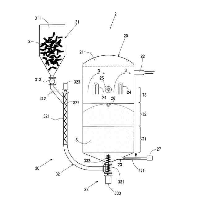 例えば、バイオマス燃料をガス化するガス化装置として、反応塔の上方からバイオマス燃料を投入し、前記反応塔の内部において前記バイオマス燃料から生成されたガスを上方から送出する、いわゆるアップドラフト式のガス化装置が特許文献1に開示されている。