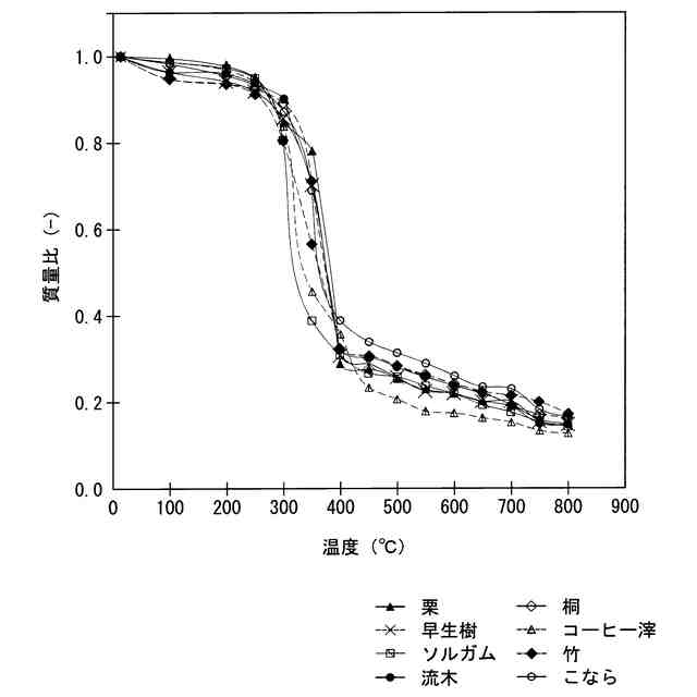 前記木質系材料は、木材からなる生物由来の有機資源であり、例えば、針葉樹、広葉樹、落葉樹、果樹剪定材、竹、早生樹及び流木など含む。