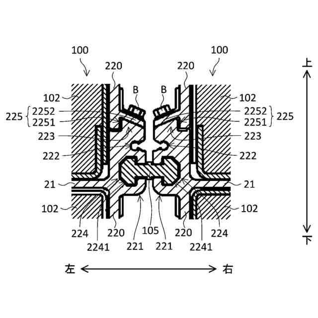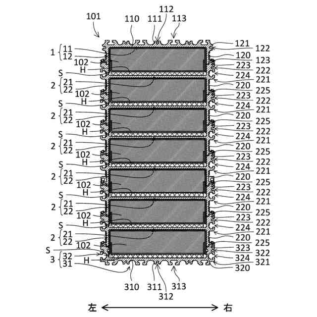 前記第1方向において隣り合う前記ケース部材のうちの前記第1方向の一方側の前記ケース部材は、前記第1方向の一方側の前記ケース部材の前記板部の前記第1方向と交差する第2方向の両端側に配置される第1連結部をさらに有し、