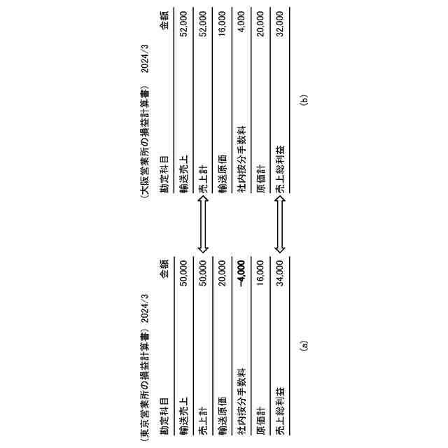 借方の勘定科目を按分手数料とし、部門を前記他の部門とし、金額を前記他の部門の原価金額とし、貸方の勘定科目を按分手数料とし、部門を前記受注部門とし、金額を前記他の部門の原価金額と同じ金額とした仕訳データを生成する仕訳データ生成部を、さらに備え、