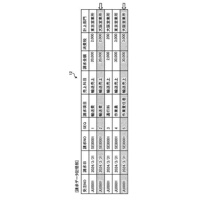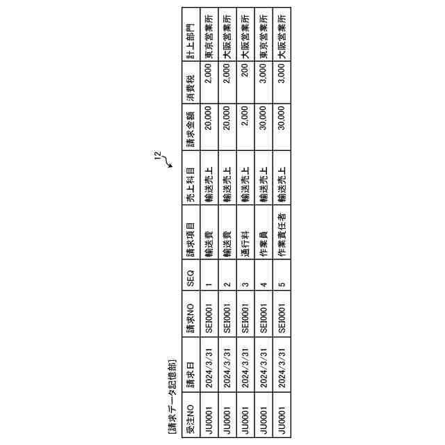 【解決手段】判別部が、受注部門及び他の部門の、請求項目、請求金額及び計上部門を含む請求データのうち、他の部門の請求データが原価按分データの生成対象であるか否かを判別する。取得部は、他の部門の請求データが原価按分データの生成対象である場合、他の部門の請求データの請求項目に対応する原価項目及び按分手数料率を按分対象マスタテーブルから取得する。算出部は、他の部門の請求データの請求金額に、取得された按分手数料率を乗算処理した原価金額を算出する。原価按分データ生成部は、算出された原価金額、原価項目及び計上部門を含む他の部門の原価按分データを生成する。また、生成した他の部門の原価按分データの原価金額をマイナスの金額とした原価金額、生成した他の部門の原価按分データに含まれる原価項目と同じ原価項目を含む、受注部門の原価按分データを生成する。