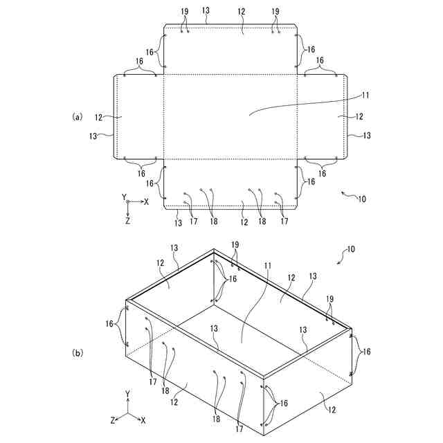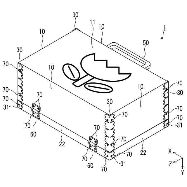 本願請求項4に記載の発明は、前記ケース本体の下面側及び前記蓋本体の上面側の少なくとも2面にユーザーの希望に合わせた図形や絵等の意匠を施すことができるようになっており、ユーザーの個性を発揮することができるようになっていることを特徴とする。