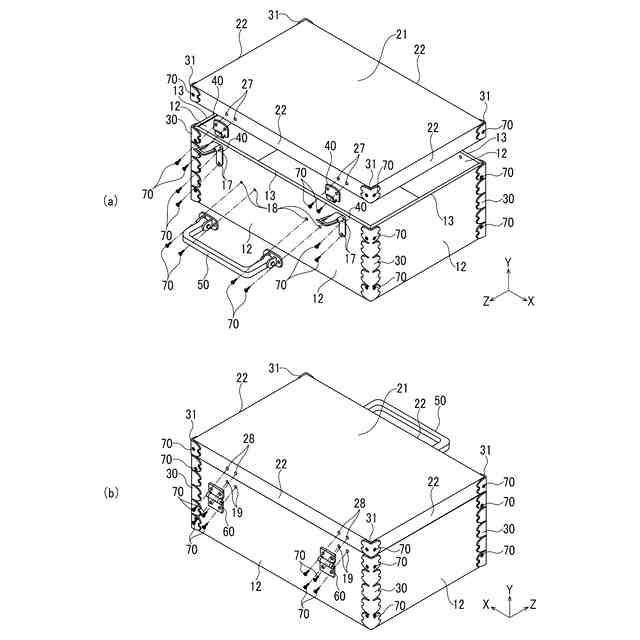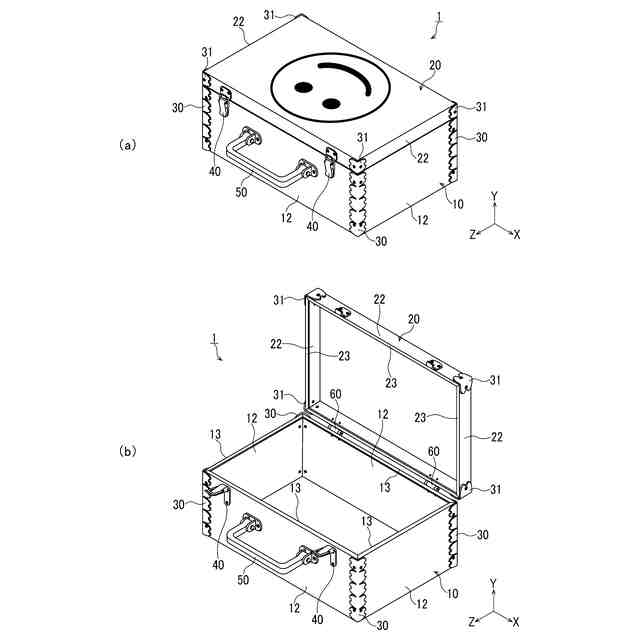 【解決手段】上面に開口部を有するケース本体と、前記ケース本体の開口部を開閉する蓋体と、前記ケース本体及び前記蓋体の四隅の外側に取り付けられた装飾部材と、前記ケース本体を持ち運ぶための取手と、を備え、前記ケース本体及び前記蓋体は、レーザー加工によって構成された、周囲に複数の側板部が連接された一枚の板状部材からなり、前記側板部を折り曲げることによって組み立てられ、前記折り曲げられた側板部同士によって形成された前記ケース本体及び前記蓋体の四隅が、前記装飾部材によって接合されると共に、少なくとも前記ケース本体と前記蓋体の各表面には図形或は絵などから成る意匠を施すことができるように成した。