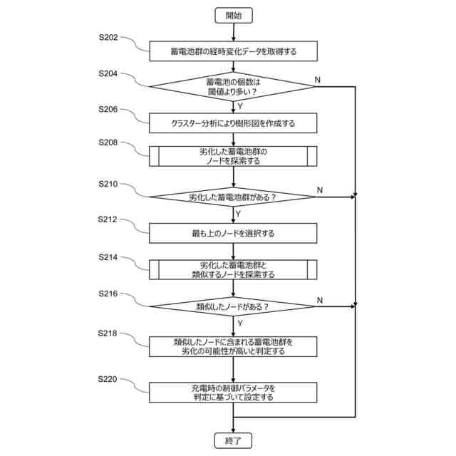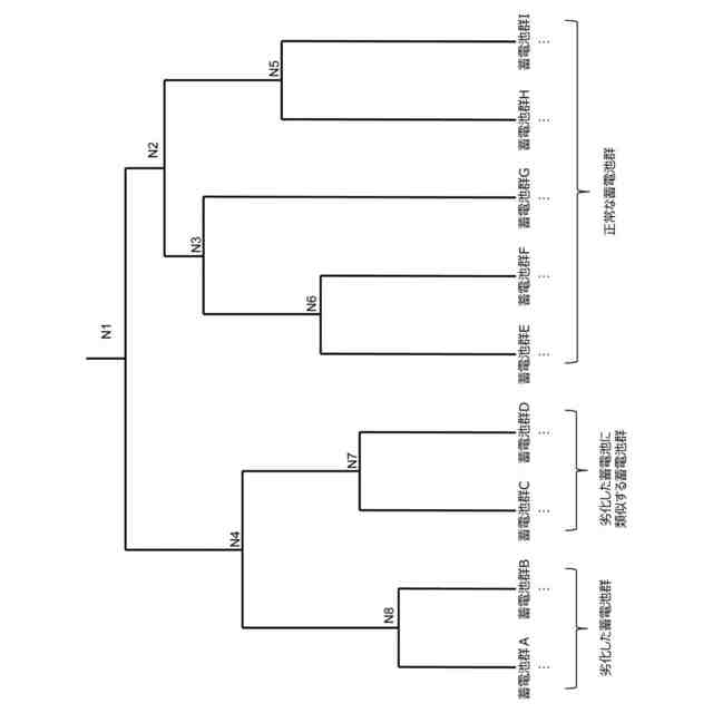 前記一群の蓄電池の特徴を判定することでは、前記一群の蓄電池と対応する経時変化データの特徴が、劣化したと判定された他の蓄電池における経時変化データと類似している場合に、前記一群の蓄電池の特徴を、劣化の可能性が大きい一群であると判定する、