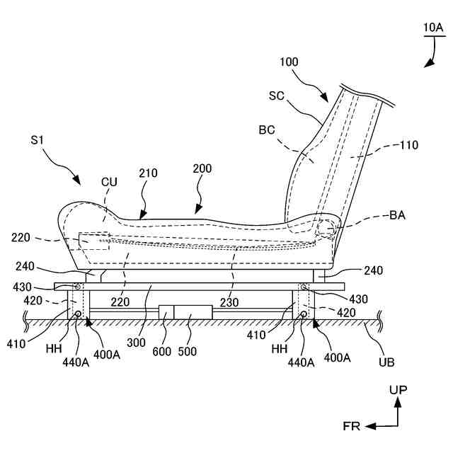 【解決手段】着座した乗員Pの骨盤部から大腿部を支えるシートクッション部200と、乗員Pの背部を支えるシートバック部100と、が設けられた着座シートS1と、着座シートS1の車両下側に設けられ、着座シートS1を車両前後方向に移動させるスライドレール部300と、スライドレール部300の車両前側および車両後側に設けられ、スライドレール部300とフロアパネル部UBとを連結させ、スライドレール部300を介して着座シートS1を上昇あるいは下降させる高さ調整部400と、を備えている。