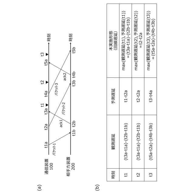 通信回線の遅延を計測する場合、データの送信時刻及び相手方装置から受信した確認応答の受信時刻から遅延時間、すなわち観測遅延を求めることが一般的である。しかし、この方法では、突発的に発生する突発遅延を予測することができない。特に通信装置が移動する場合、建物等の遮蔽物やハンドオーバにより通信環境は変化する。また、自装置や周囲の装置が大量のデータを送信することにより輻輳が生じる。