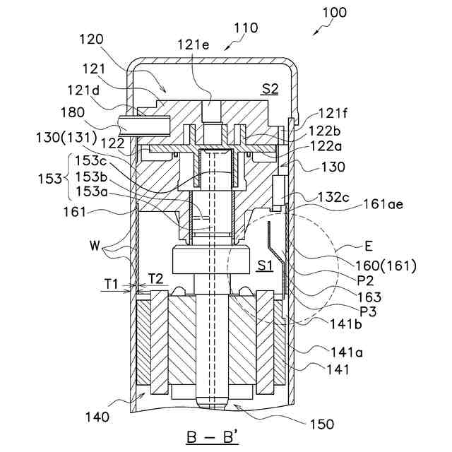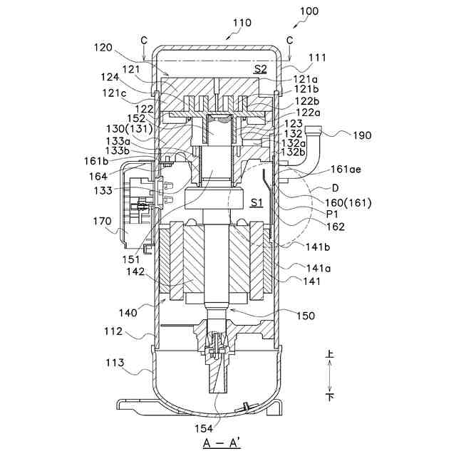 外周面が前記ケーシング(110)の内周面に対向する円筒部(161ae)を含む、