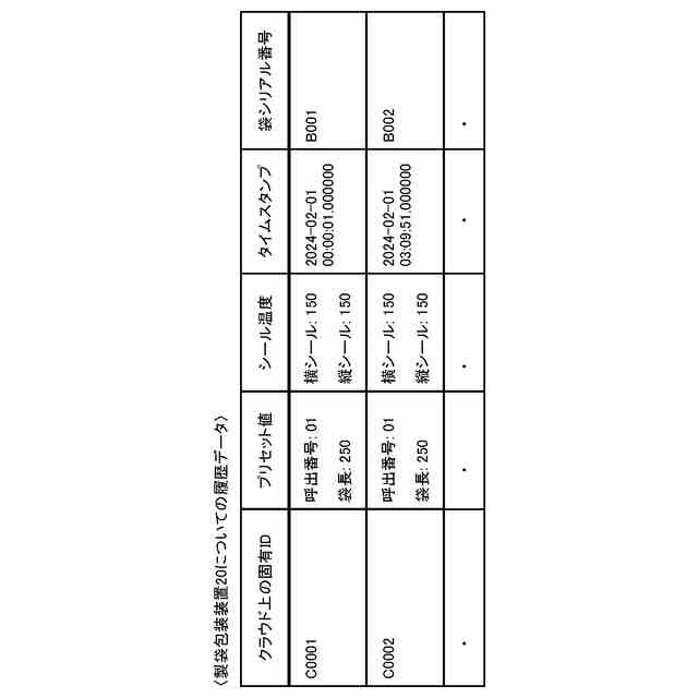 図2は、一実施形態に係るトレーサビリティ管理装置1の第1記憶部1Bに記憶される製袋包装装置20についての履歴データの一例を示す図である。