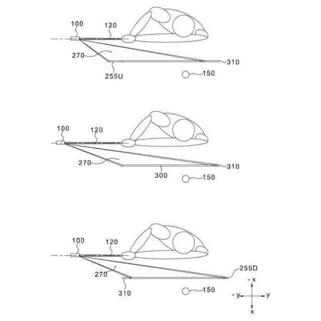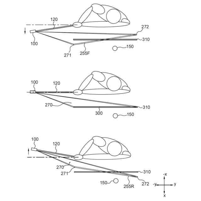 ゴルフクラブがy軸と平行になるように配置された状態でゴルフヘッドを上側に移動させるとき、前記ビーム軌跡は、正常照射軌跡(300)から-y方向に移動する第11の軌跡(255U)となるように照射され、