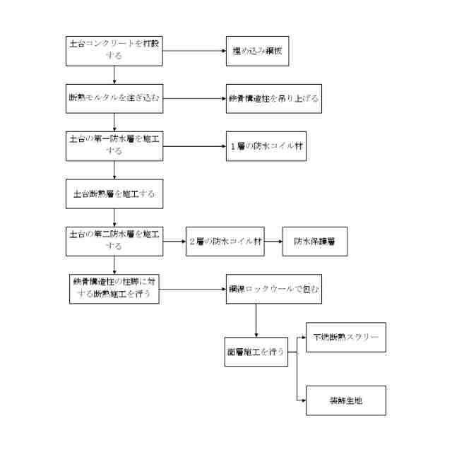鉄骨構造柱の柱脚に対する断熱施工を行うステップS6と、