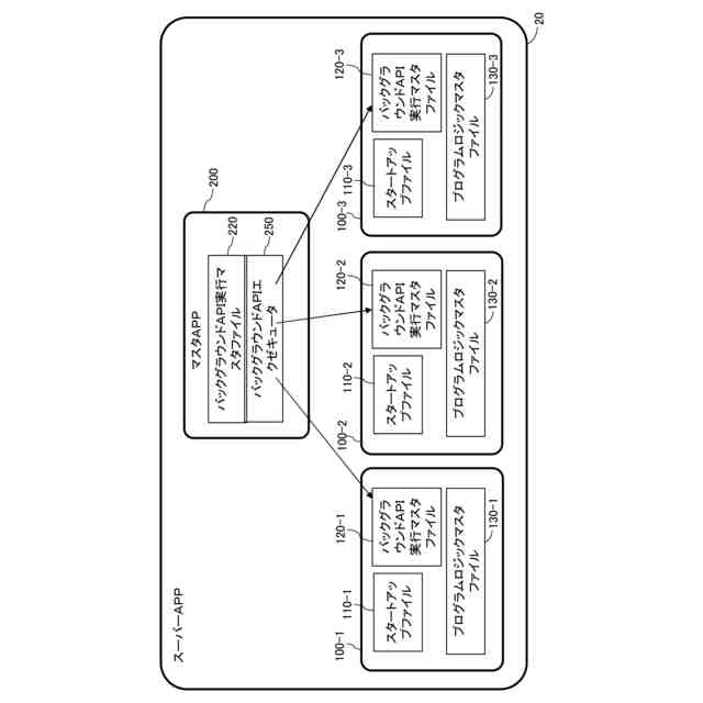 本発明の一実施形態では、バックグラウンドAPIエクゼキュータは、各スレーブAPPのバックグラウンドAPI実行マスタファイルを呼び出すために使用される。