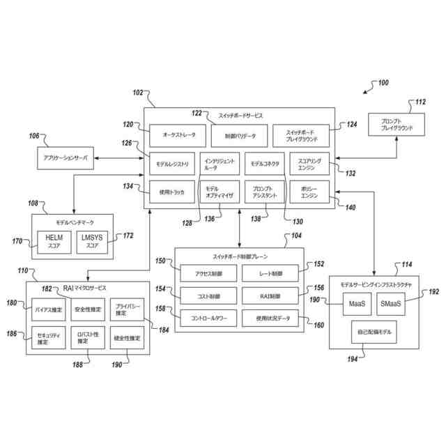 【解決手段】スイッチボードプラットフォームのためのコンピュータ実装方法は、スイッチボードプラットフォームのインテリジェントルータが第1リクエストをアプリケーションから受信し、ポリシーパラメータセットの少なくとも1つのポリシーパラメータに少なくとも部分的に基づいて基盤モデルのサブセットの基盤モデルを選択し、スイッチボードプラットフォームのモデルレジストリから基盤モデルの接続データを決定し、スイッチボードプラットフォームのモデルコネクタを介して基盤モデルによる処理のための第2リクエストを送信し、基盤モデルからの応答を受信し、アプリケーションに応答を送信する。