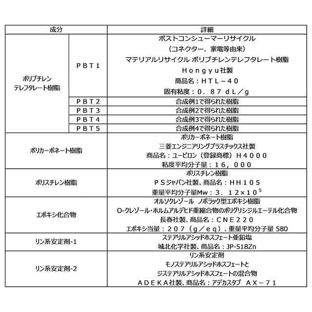 熱可塑性ポリエステル樹脂の中で代表的なエンジニアリンブプラスチックであるポリブチレンテレフタレート樹脂は、成形加工の容易さ、機械的物性、耐熱性、耐薬品性、保香性、その他の物理的、化学的特性に優れていることから、自動車部品、電気・電子部品、精密機器部品などの射出成形品に広く使用されている。