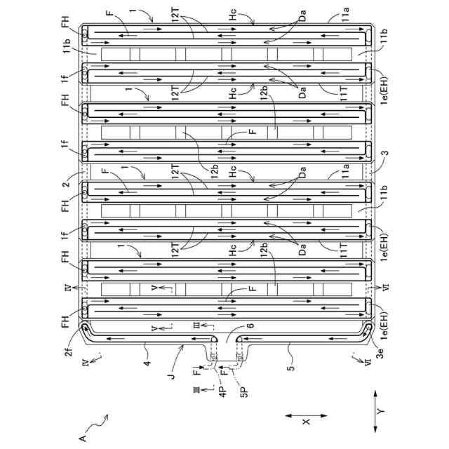 例えば、バッテリ車(BEV:Battery Electric Vehicle)において、フロアーの下側に配置されたバッテリは、上下方向で小さい配置スペースに収容されることから、このバッテリを冷却する熱交換器も薄型であることが望まれている。