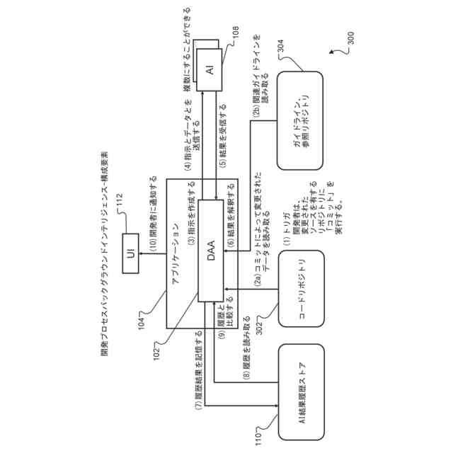 本開示の実装形態による、開発プロセスバックグラウンドインテリジェンス構成要素図を関連するプロセスとともに示すブロック図である。