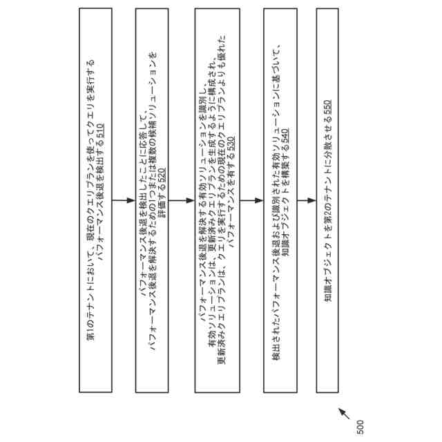 【解決手段】方法は、第1のテナントにおいて、現在のクエリプランを使ってクエリを実行するパフォーマンス後退を検出し、パフォーマンス後退を検出したことに応答して、パフォーマンス後退を解決するための1つまたは複数の候補ソリューションを評価し、1つまたは複数の候補ソリューションから、パフォーマンス後退を解決する有効ソリューションを識別する。有効ソリューションは、更新済みクエリプランを生成する。更新済みクエリプランは、クエリを実行するための現在のクエリプランよりも優れたパフォーマンスを有する。方法はまた、検出されたパフォーマンス後退および識別された有効ソリューションに基づいて、知識オブジェクトを構築し、知識オブジェクトを第2のテナントに分散させる。