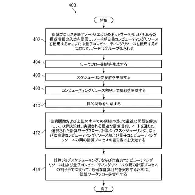 【解決手段】方法は、計算プロセスを表すノードとエッジのネットワークおよびそれらの構成情報の入力を受信し、ワークフロー制約、スケジューリング制約、コンピューティングリソース割り当て制約及び目的関数を生成し、生成される目的関数およびすべての制約に従って最適化問題を解決し、実現される最適な計算目的、ノードを通じた選択された計算ワークフロー、計算ジョブスケジューリング、ならびに古典コンピューティングリソースおよび量子コンピューティングリソースの間の計算プロセスの割り当てを決定し、計算ジョブスケジューリングおよび古典コンピューティングリソースと量子コンピューティングリソースと間の計算プロセスの割り当てに従って、最適な計算目的を実現するために計算ワークフローを実行する。