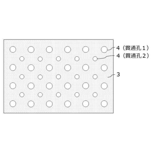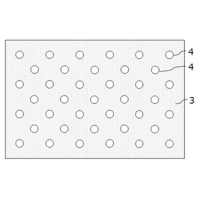 実施例1~15、比較例1~3に用いた表皮材の貫通孔の配置図である。