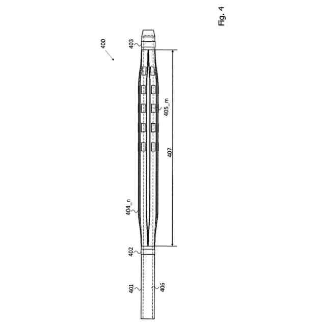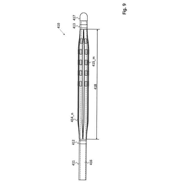 前記第2の可撓性外側構造体の近位に、前記第2のシャフト(401、411)に取付けられるか、前記第2のシャフト(401、411)上に配置された、例えば環状電極である電極(402、403)を有し、かつ/又は、