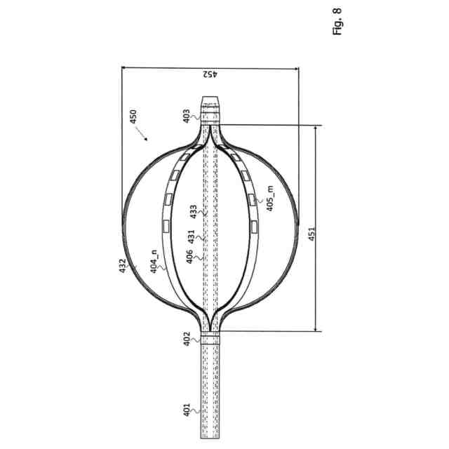 前記第2の可撓性外側構造体は、複数のリブ(404_n)を有するか、又は複数のリブ(404_n)によって形成される、請求項1~3のいずれか1項に記載のアブレーションカテーテル装置(440、450、460)。