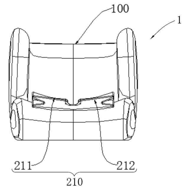 頸部エアバッグが膨張した状態のマッサージ器の正面図である。