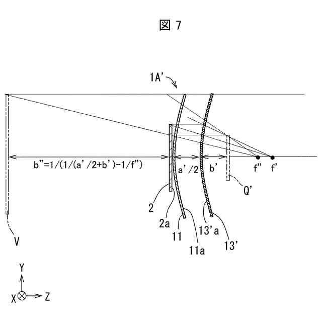表示装置の調整を行った場合の虚像の見え方を説明する図である。