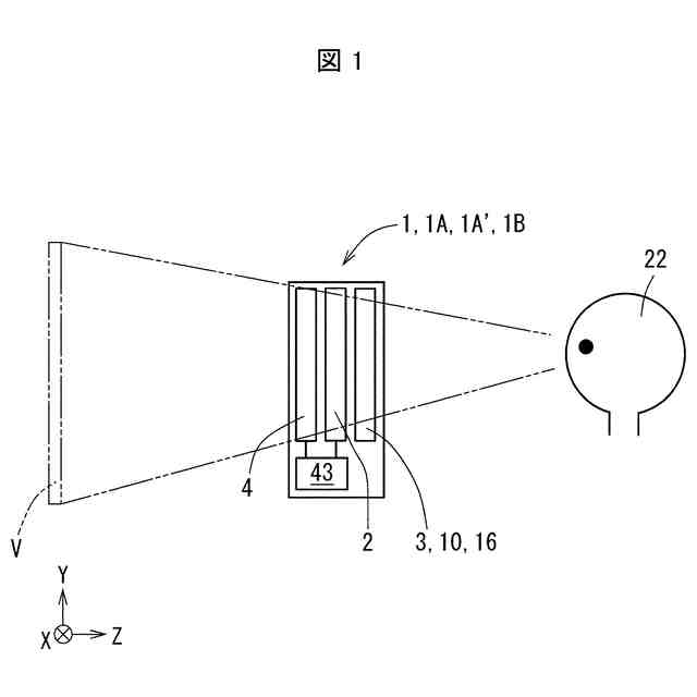 前記像は、前記視認部から離れて前記視認部を正対して見たときに、前記視認部から視認可能である第1領域および前記視認部から視認できないとともに前記第1領域よりも小さい第2領域を有する。