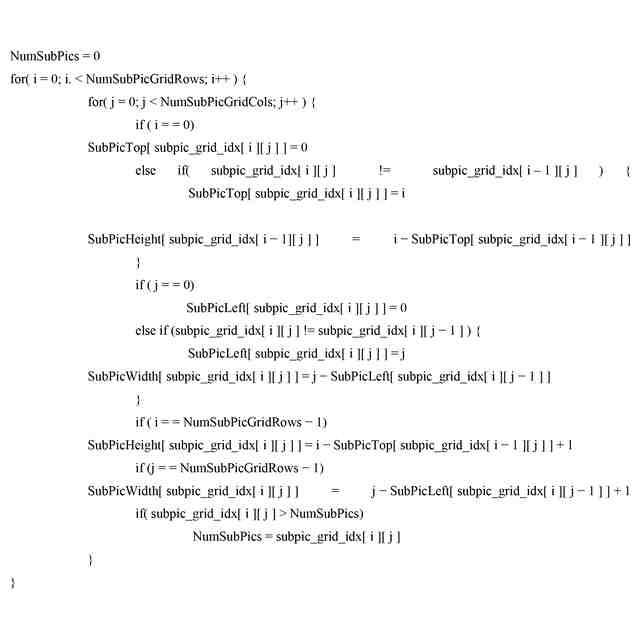 さらに別の態様において、ビデオ処理の方法が開示される。方法は、ビデオのピクチャとビデオのビットストリーム表現との間の変換を実行することを含み、ピクチャは1つ以上のサブピクチャを含む。ビットストリーム表現は、異なるサブピクチャが異なる識別子を有することを指定するフォーマット規則に適合する。