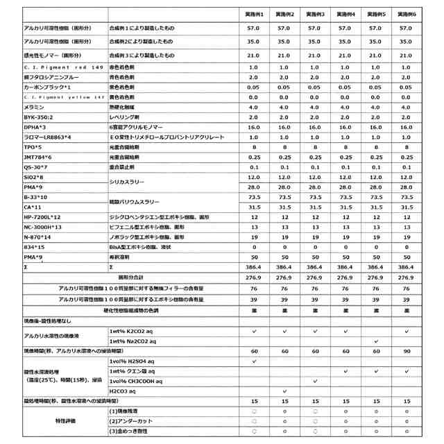 また、アルカリ現像型組成物は、回路基板上に塗布、パターン露光されたのちに、アルカリ水溶液により現像され、不要部分(未露光部分)を除去することで、回路基板上に硬化物のパターンを形成することに用いられる。