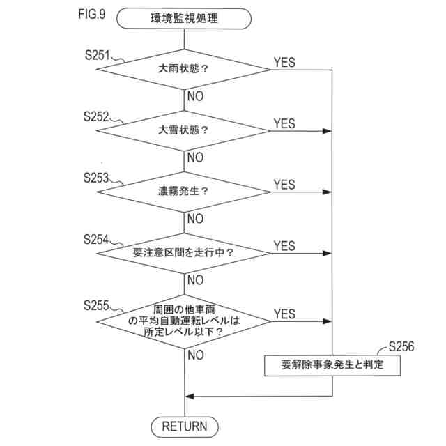 自動制御部は、運転モード設定部により設定された運転モードに基づき、その運転モードにおいて設定されている自動運転動作を実行する。要解除事象判断部は、少なくとも運転モードが高度自動化モードである場合に、所定の要解除事象が発生したか否かを判断する。要解除事象とは、実行するように設定されている自動運転動作の少なくとも1つを解除(実行停止)すべき所定の事象である。