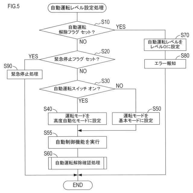運転モード設定部は、車両の運転モードを、高度自動化モード及び基本モードの何れかに設定する。高度自動化モードとは、車両の走行に必要な上記複数種類の運転動作の少なくとも一部を周囲情報に基づいて自動で実行する運転モードである。基本モードとは、自動で実行する運転動作である自動運転動作の種類が高度自動化モードよりも少ないか若し